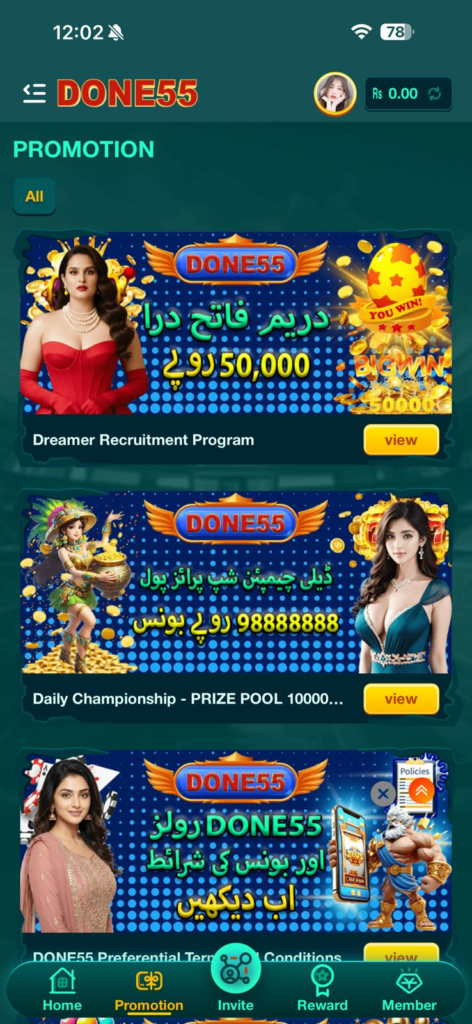 The Done55 Game APK provides an easy ,simple, and mutual platform for their users in Pakistan. The multiple games , rewards, bonuses, and the most easy and secure payment methods makes it very easy for customers to win the trust of the game .The App focuses on excellent performance, easy instructions, and provides 24/7 customer support to all users of the platform. The features like bonuses and rewards keep users engaged and consistent in the App in a good way. By controlling the funds of the game carefully, users can enjoy every moment of the platform safely and happily.