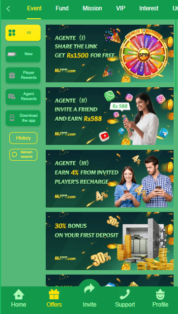 Following is the list of bonuses and rewards that a User gets in MJ77 Game: