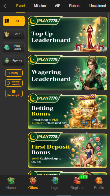 Play7778 Game is one of the online money-making apps that is expanding the quickest in Pakistan. With exciting slot games, competitive Teen Patti online matches, real cash prizes, daily bonus offers, and fast withdrawal options, it offers a comprehensive gambling experience. If you’re looking for an enjoyable real money game with many of chances to earn money, the Play7778 App is worth a try.
