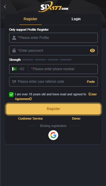 After installation, users create an account using basic details. Some versions allow optional referral codes.